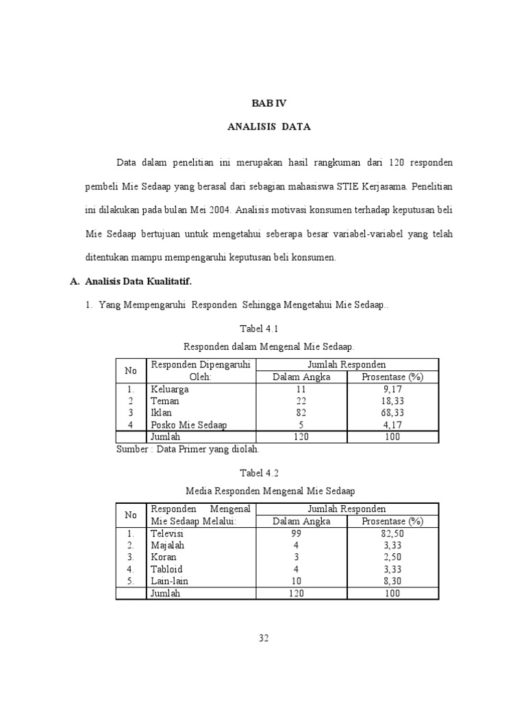 Analisis secara mendalam ternyata ada keterkaitan yang erat antara peran yang dilakukan orang tua orang tua dan pengamalan sholat anak. Deskripsi data penelitian ini menggunakan metode kuantitatif deskriptif sampel yang digunakan pada penelitian ini adalah siswa kelas x tgb smk negeri 1 kota sukabumi tahun ajaran 2012 2013 melalui instrumen penelitian angket yaitu faktor faktor kesulitan. Jadi setelah data direduksi kemudian disajikan maka tahap analisis selanjutnya adalah penarikan kesimpulan. Bab 4 analisis data 4 1 pendahuluan bab ini akan membincangkan hasil analisis dan dapatan kajian yang diperolehi daripada soal selidik yang diedarkan kepada murid murid yang keseluruhannya berbangsa melayu dari tahun enam gigih sk bandar easter.