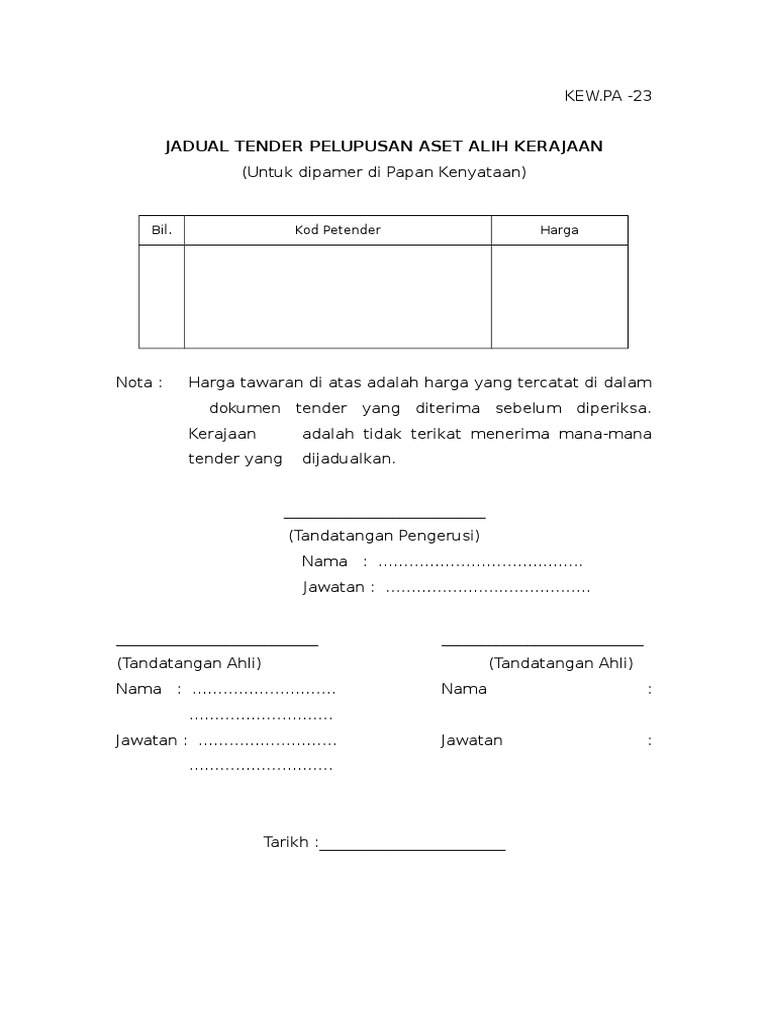 Borang Kew Pa 23 Terbaru