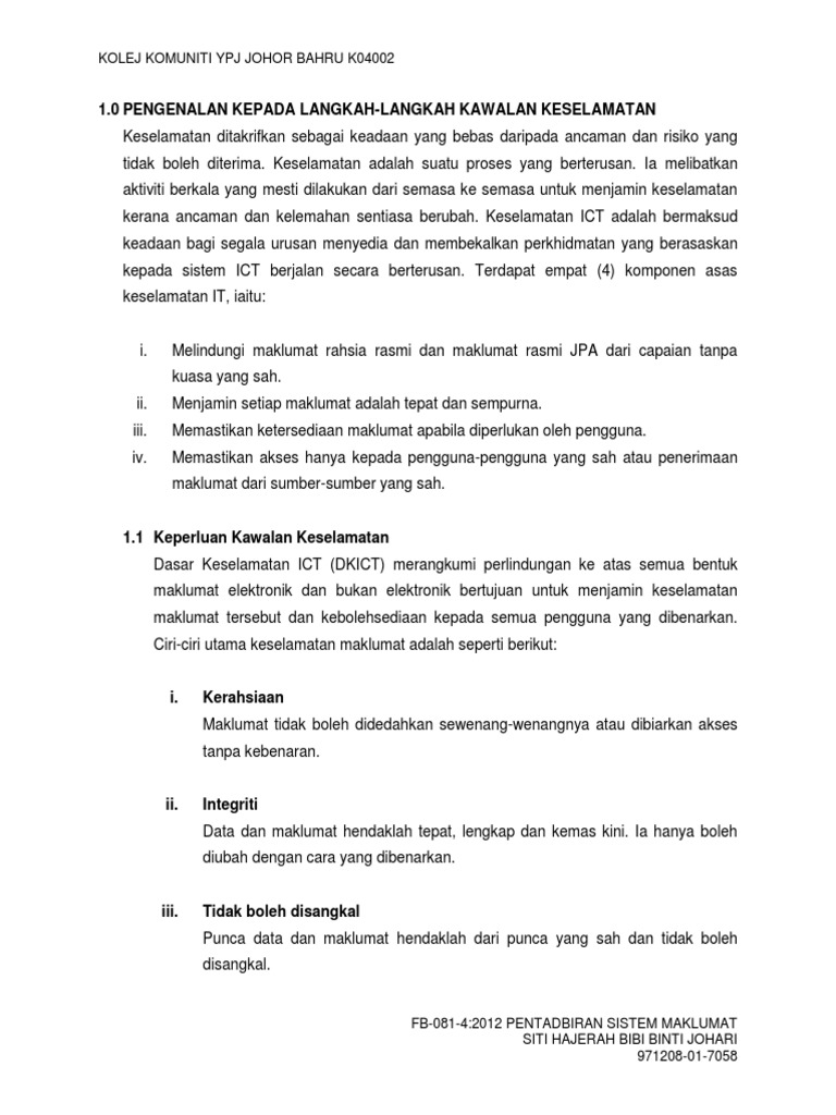 Ciri Ciri Utama Keselamatan Maklumat Dalam Rangka Dasar Keselamatan Teknologi Maklumat