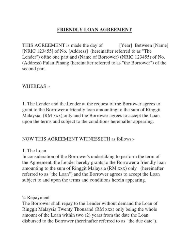 Friendly Loan Agreement Malaysia