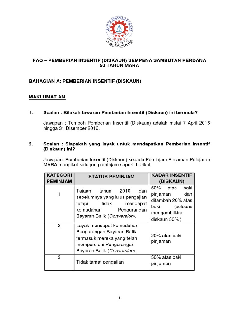 M H I B H I B L O G Insentif 50 Bagi Pinjaman Mara