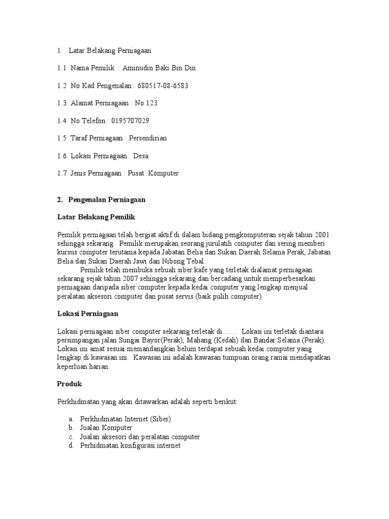 Contoh Rancangan Perniagaan Kedai Komputer