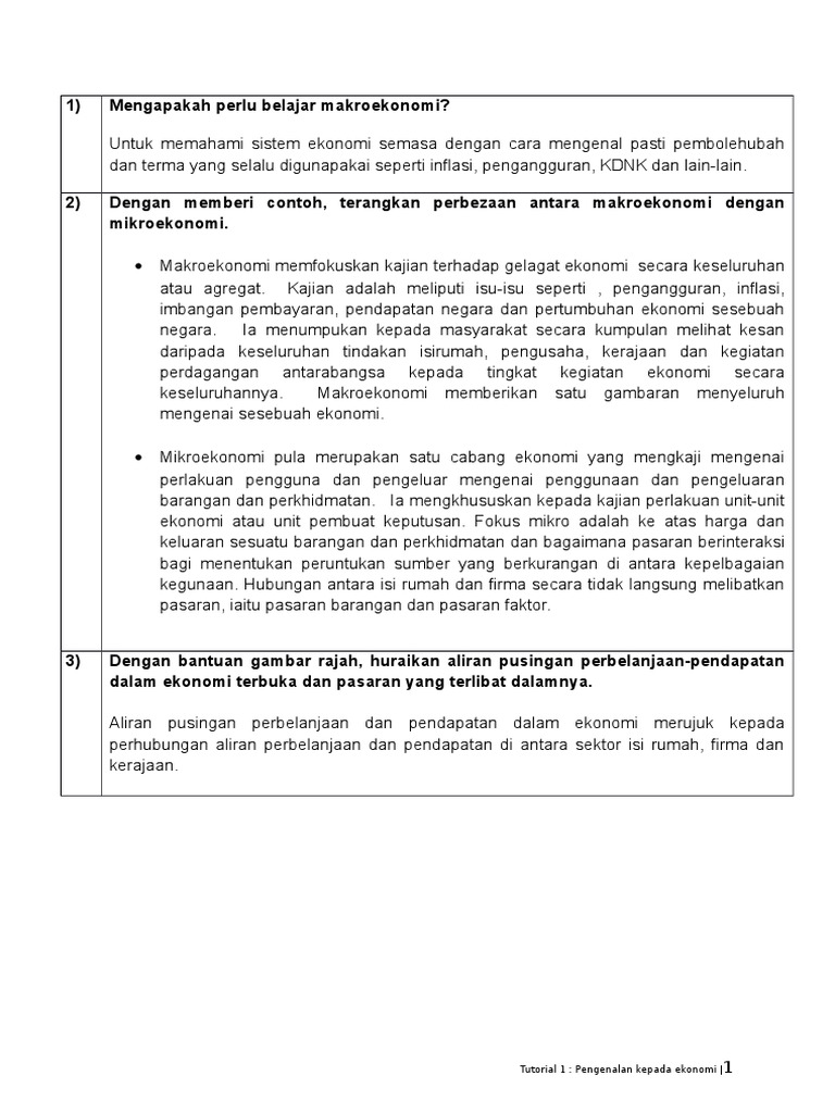 Eppd1023 Makroekenomi 1 Jawapan Tutorial 1