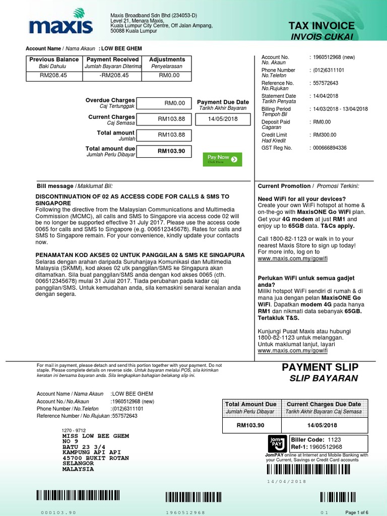 916638076 28apr2018 Pdf Maxis Broadband Sdn Bhd 234053 D Level 21 Menara Maxis Kuala Lumpur City Centre Off Jalan Ampang 50088 Kuala Lumpur Tax Course Hero