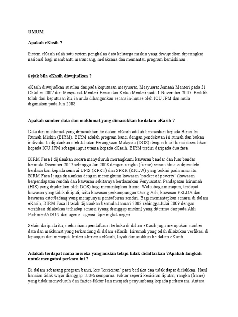 Saya pernah ada pengalaman ikut serta dalam program kebajikan ziarah rumah ke rumah untuk menyantuni keluarga yang kurang berkemampuan. Namun begitu cara seperti ini tidak akan dapat meringankan beban golongan miskin kerana bantuan yang diberikan sama ada dari kerajaan agensi kebajikan ataupun perseorangan hanya dapat bertahan dalam jangka masa yang pendek. Insiden kemiskinan daripada 3 8 pada tahun 2009 kepada 2 0 pada tahun 2015 dan meningkatkan purata pendapatan isi rumah berpendapatan 40 terendah dirujuk sebagai b40 daripada rm1 440 pada tahun 2009 kepada rm3 050 pada tahun 2015. Kota dan desa juga punya batas yang berbeda.