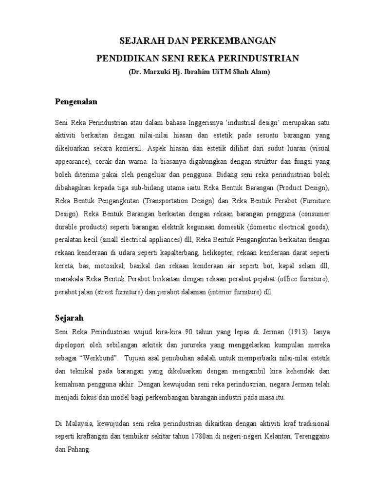 Perkembangan Seni Reka Perindustrian Di Malaysia