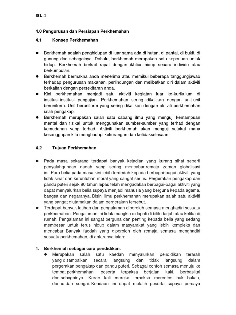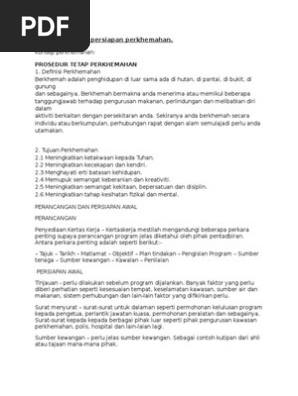 Pengurusan Dan Persiapan Perkhemahan Docx Pdf Document