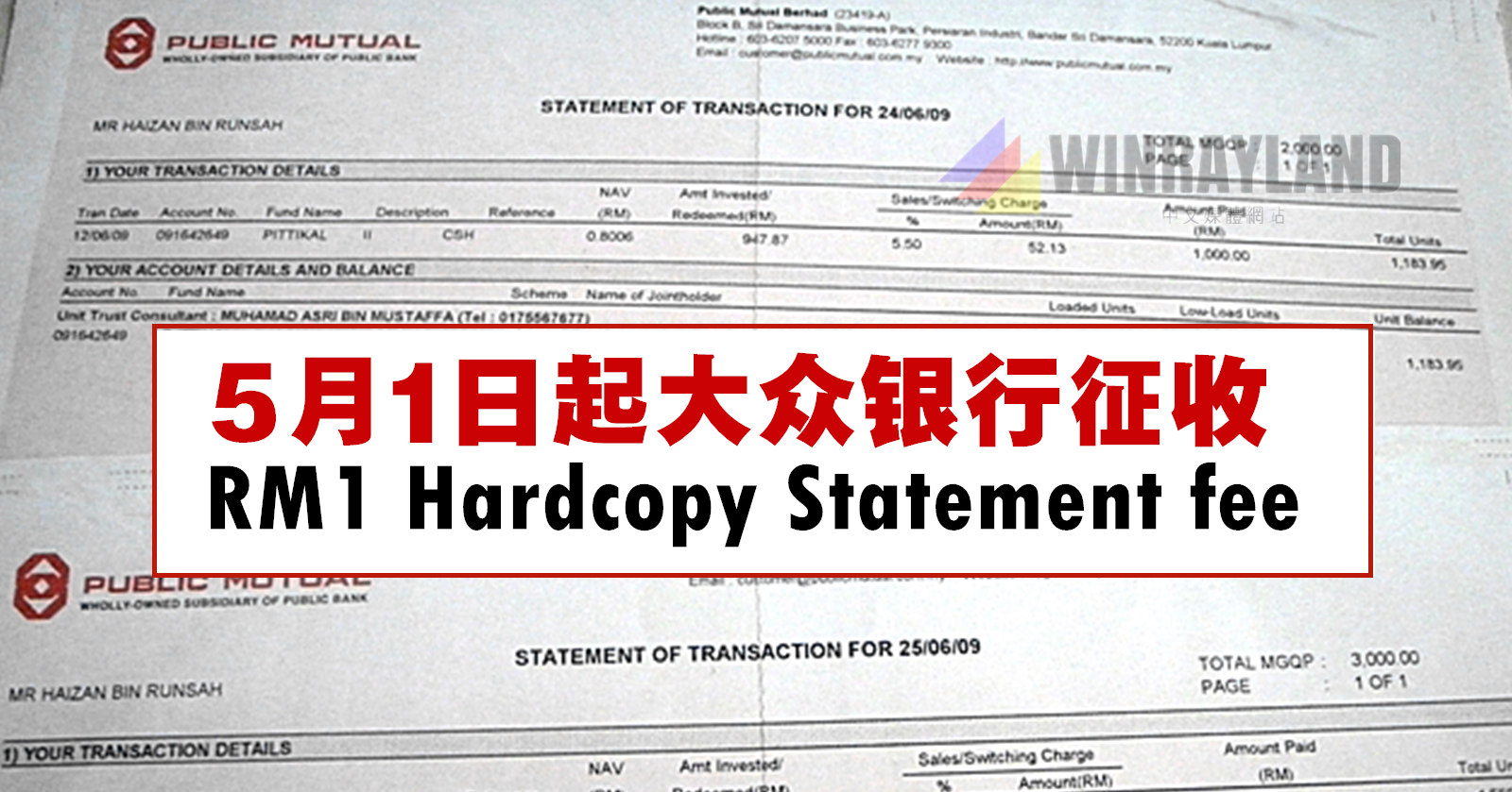 Starting May 2019 Public Bank Card Users Will Have To Pay Rm1 For Hard Copy Statements World Of Buzz