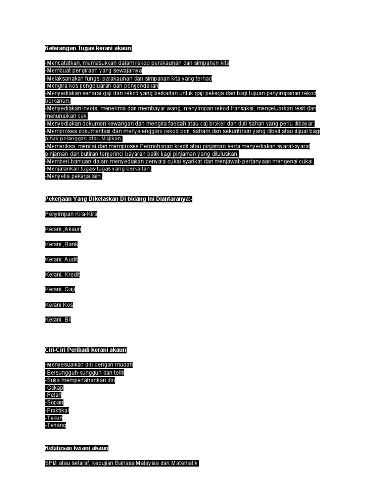 Keterangan Tugas Kerani Akaun